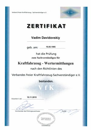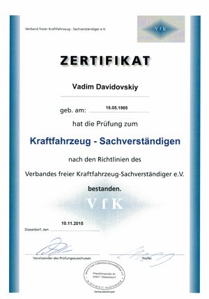 KFZ-Sachverständiger Vadim Davidovskiy Ihr zuverlässiger und unabhängiger Partner